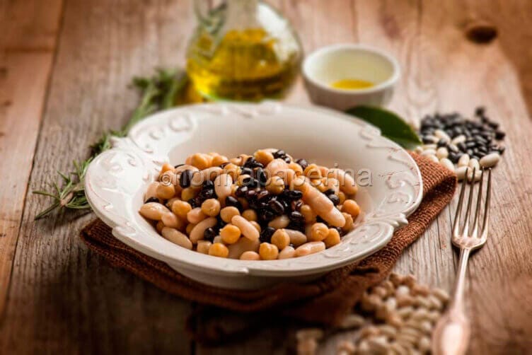 Prepararla è facilissimo: i legumi vanno messi in ammollo per almeno 12 ore, poi cotti lentamente con le erbe aromatiche fino a risultare morbidi ma non sfatti. Una volta raffreddati, si condiscono con olio extravergine, succo di limone, sale e pepe. Puoi arricchire la ricetta con cipolla rossa, pomodorini, olive o anche qualche cubetto di feta, se non hai intolleranza al lattosio.