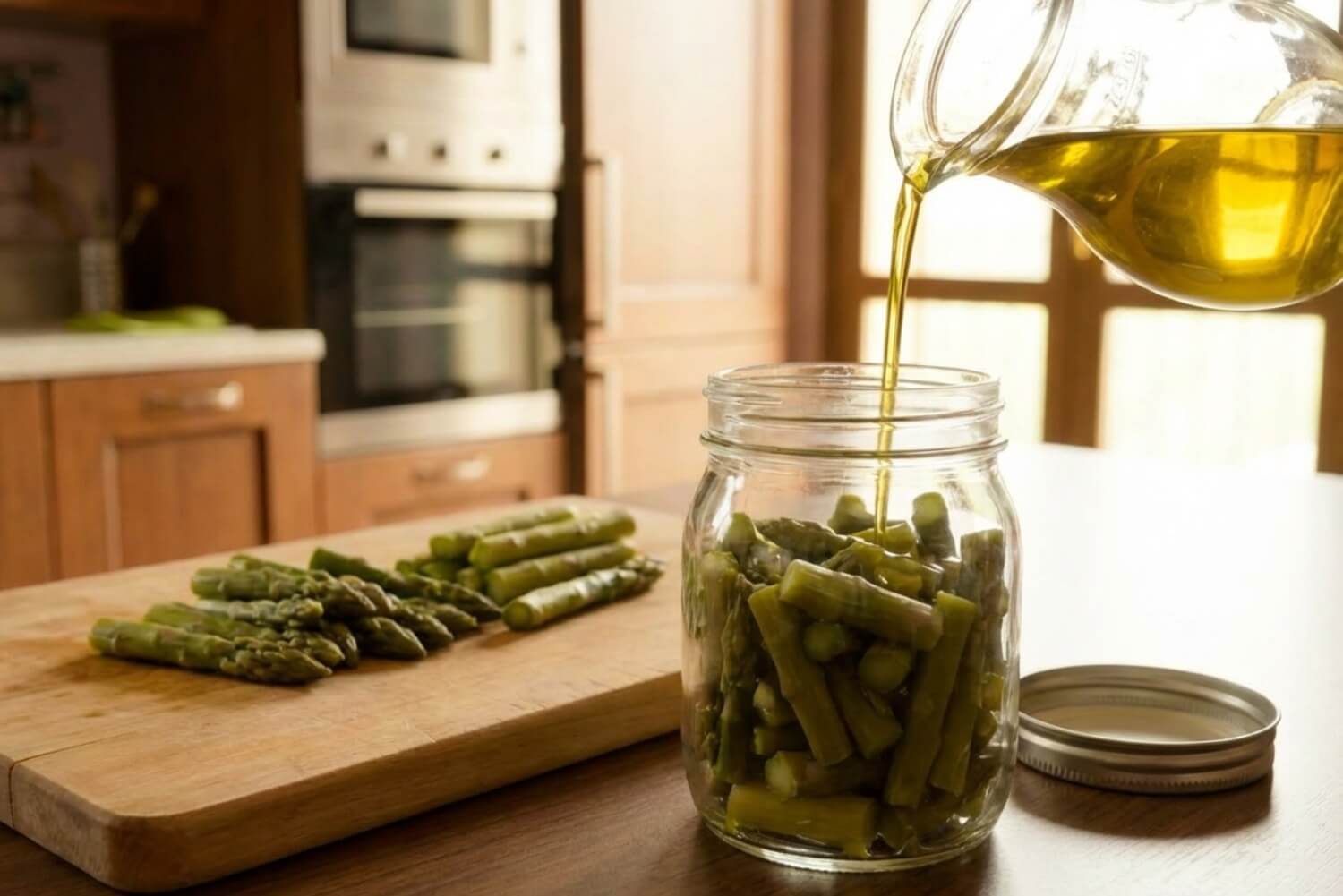 Asparagi sott’aceto: sono la soluzione più facile quando vuoi una conserva brillante e pronta a dare carattere. Anche qui gli asparagi vanno sbollentati e poi invasati in una soluzione di aceto (spesso con acqua e sale, a seconda della ricetta), sempre ben immersi e con barattolo chiuso correttamente. Il sott’aceto è perfetto quando vuoi un contorno che “sveglia” il piatto: con salumi, carni, formaggi o anche solo con patate e uova. E anche qui vale la regola d’oro: meglio seguire procedure affidabili e non giocare con le conservazioni se non sei sicura.