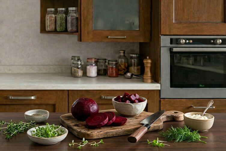La lessatura è la strada più facile quando vuoi una consistenza morbida e uniforme. Il vapore lavora bene se vuoi tenere il gusto più pulito. Il forno, invece, concentra un po’ di più la parte dolce e rende la barbabietola molto valida per creme, contorni tiepidi e basi da frullare. Non esiste un solo metodo giusto. Esiste il metodo adatto al piatto che vuoi fare. Questo è il vero punto quando si parla di come cucinare le barbabietole rosse.