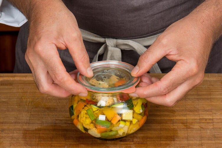 Mentre nel caso in cui la cottura a bagnomaria abbia luogo sui fornelli risultano perfetti i vasetti in vetro con chiusura a molletta e guarnizioni di gomma, in caucciù o silicone perché hanno un’ottima resistenza al calore, nel caso della vasocottura a bagnomaria in forno è preferibile utilizzare i vasetti senza guarnizioni. Queste ultime, infatti, non sempre sono in grado di tollerare le alte temperature.