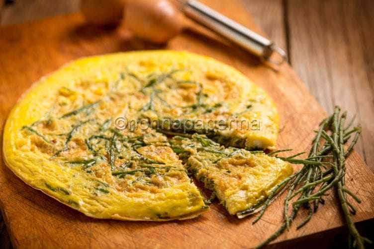 La frittata di salicornia è una variante che spicca per il sapore rustico e sapido allo stesso tempo, tendente sull’aromatico. Le frittate sono preparazioni versatili che concepiscono l’integrazione di un gran numero di ingredienti, quindi basta utilizzare la fantasia e ragionare sugli abbinamento per tirare fuori dal cilindro preparazioni straordinarie. In effetti questa frittata di salicornia stupisce per il mix di sapori, basato sulla semplicità e sulla volontà di fornire contrasti interessanti in termini di sapore. La protagonista della ricetta è la salicornia, una verdura selvatica che appartiene alla cultura popolare. Spicca per i sentori amarognoli, sapidi e aromatici, che contrastano con il gusto della frittata classica.
