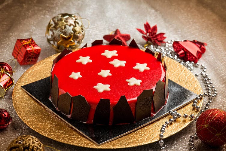 Il vero punto di forza della torta di Natale senza glutine di Iginio Massari è però la glassa a specchio. La glassa è di colore rosso brillante e trasforma una variante delle cheesecake in una delle torte di Natale più eleganti in assoluto.