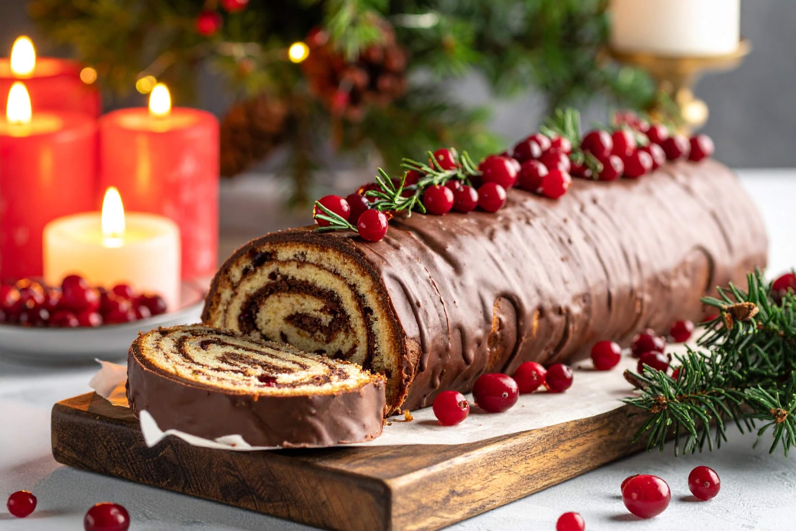 I panettoncini sono adorabili: usa impasto leggero e farcisci a freddo con crema alla vaniglia senza lattosio, rifinendo con ribes. In alternativa prepara piccoli tronchetti: una pasta biscotto senza glutine, farcita con ganache montata, arrotolata e glassata. Taglia a cilindri, decora con “neve” di cocco per un tocco festivo.