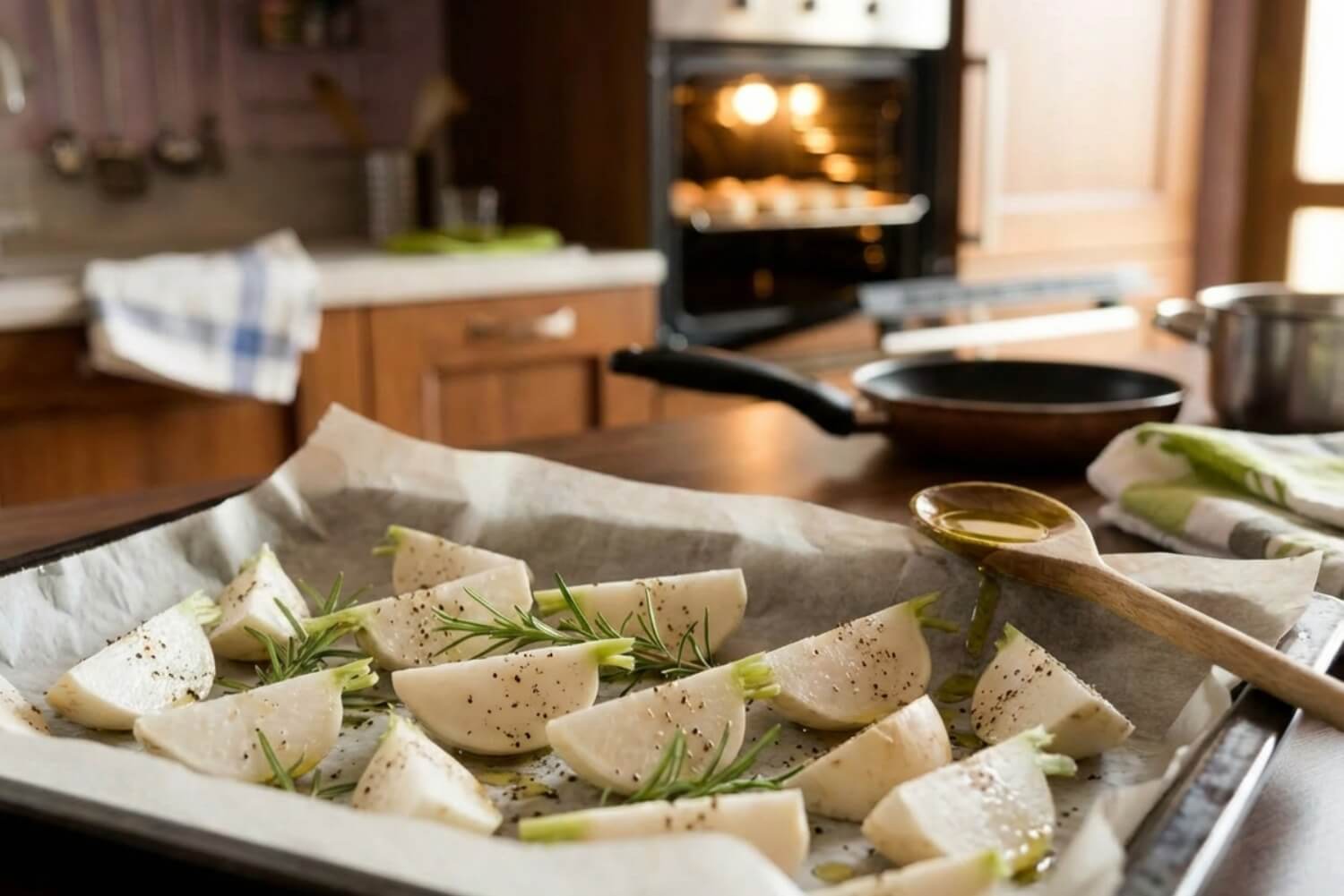 In teglia potete anche “mischiare” senza confusione: rapa + patata, oppure rapa + carota. Tenete i tagli simili, così cuociono insieme. E quando aprite il forno e sentite quel profumo, capite che la rapa non era il problema. Era la cottura.